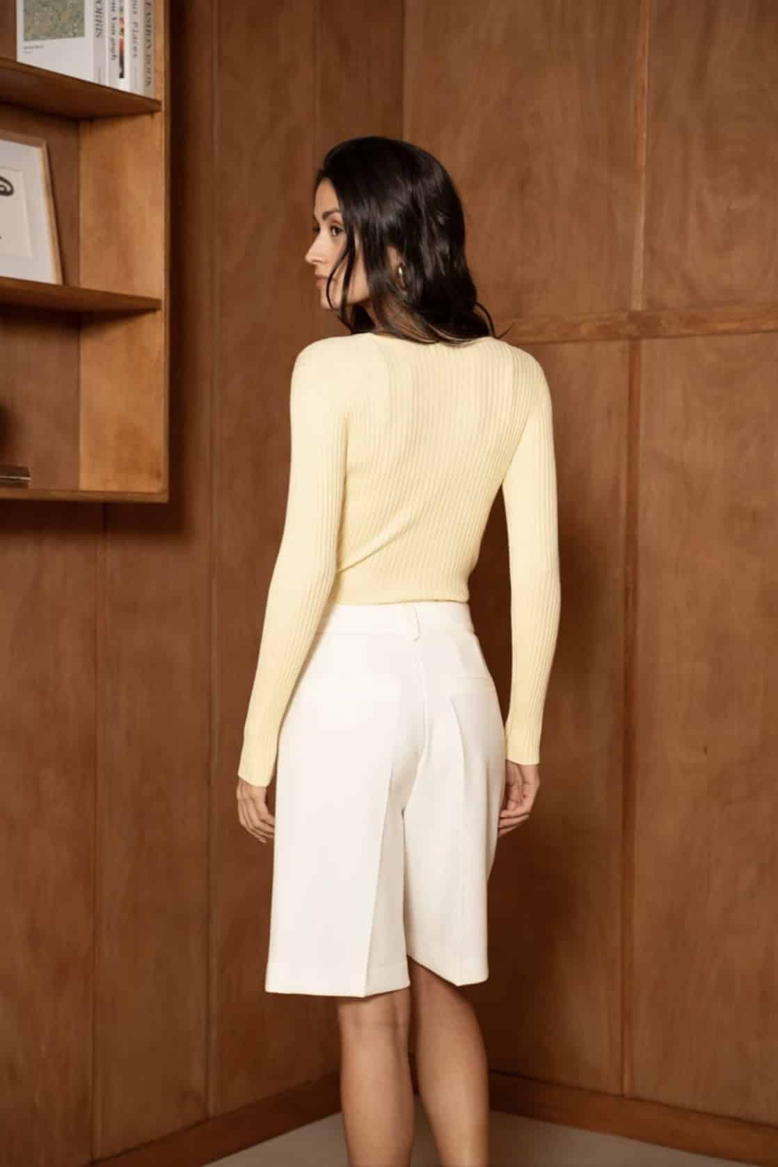 Choklate Paris, founded in 1998, is known for its feminine Parisian aesthetic and romantic silhouettes. The brand blends modern wearability with timeless elegance, creating pieces that feel effortless yet polished. This butter yellow ribbed knit exemplifies that philosophy, offering a versatile, statement-making layer that works for multiple occasions.